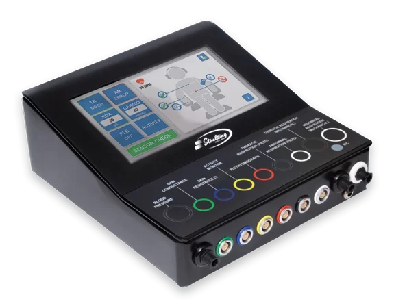 Stoelting’s Elite Polygraph is the only polygraph unit with a built-in screen. The full-color LCD touchscreen provides you with active information. What’s displayed on the screen is mirrored in your computer’s software. This allows you to select the channels you want to record and verify the proper functioning of the sensors in real-time, all without having to switch back to your computer. You’ll know in real-time if a sensor is damaged, reading too low, or improperly attached to the subject. Elite indicates this by showing a red box around the source and a red line through the tracking image on the sensor box.